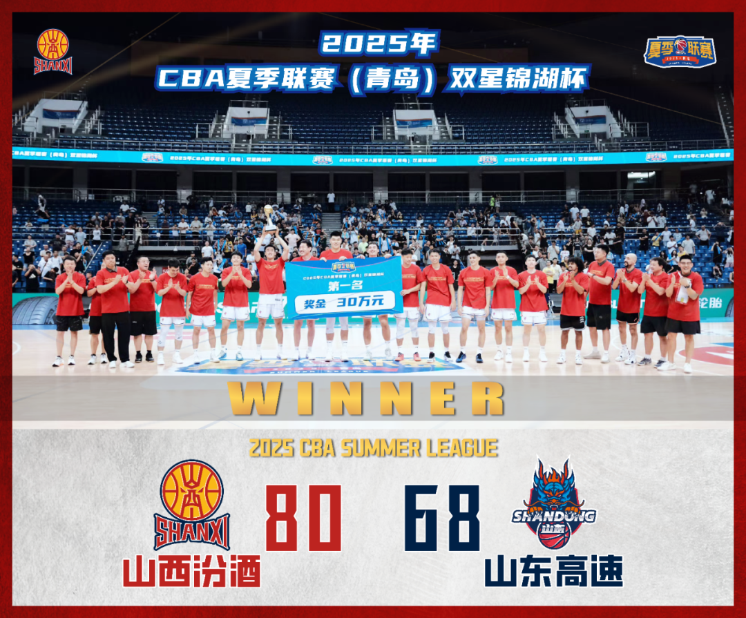 CBA夏季联赛(青岛)“双星锦湖杯”于8月30日圆满落幕,山西汾酒在决赛中80:68战胜山东高速,最终以五战全胜的佳绩结束本次夏季联赛征程。